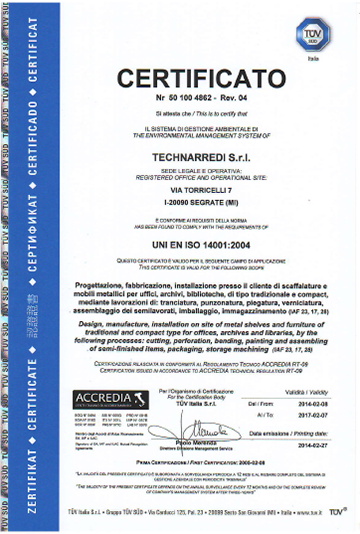 Certificazione Sistema di scaffalatura mobile